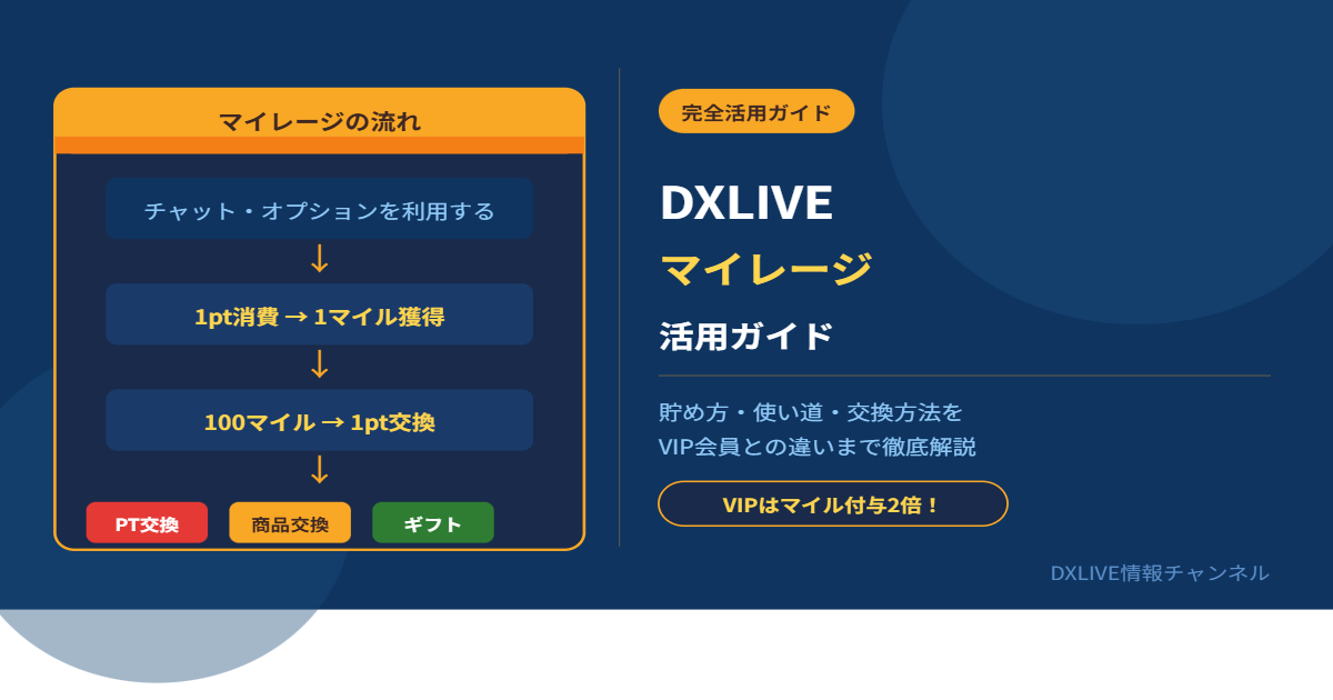 この記事ではDXLIVEのマイレージ(マイル)制度の仕組みから、ポイント交換・使い道・効率的な貯め方まで徹底解説します。うまく活用すればDXLIVEをよりお得に楽しめます。