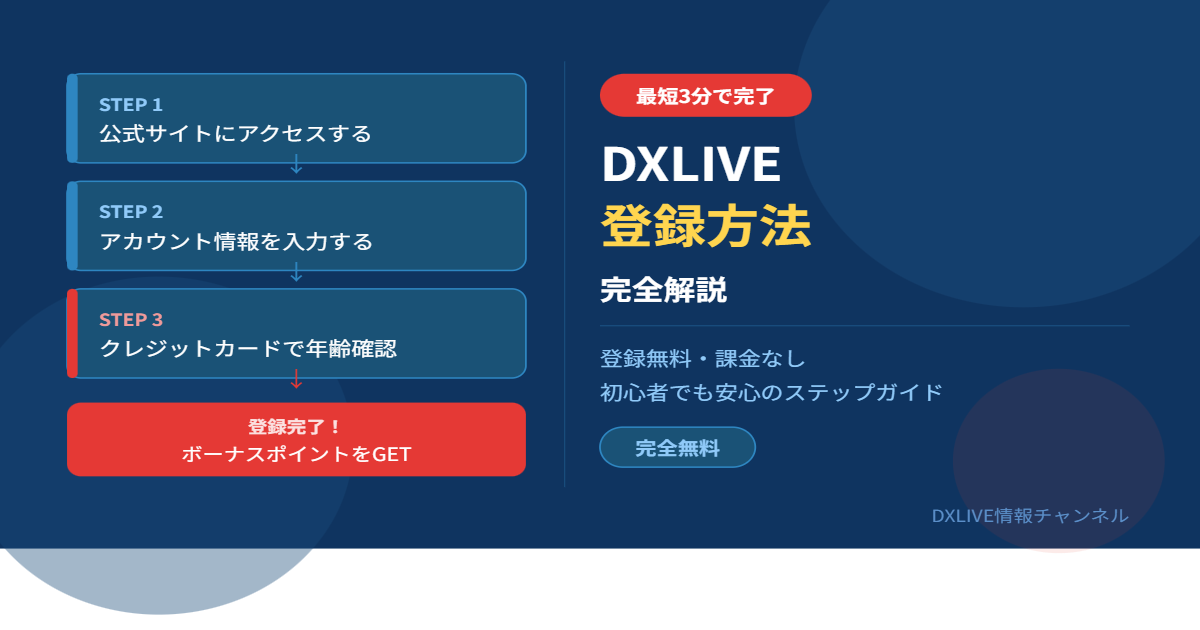 この記事ではDXLIVEの無料登録手順を、初めての方でもわかるようにステップごとに解説します。登録は最短3分で完了し、クレジットカードを入力しても登録時点での課金は一切発生しません。安心して読み進めてください。